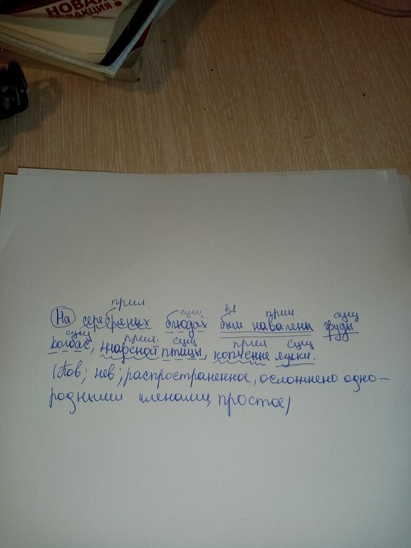 Очень прошу разобрать это предложение . ( Разбор цифра 4 )СРОЧНО ДАЮ 80 Б На серебряных блюдах были навалены груды колбас, жареной птицы, копченые языки.