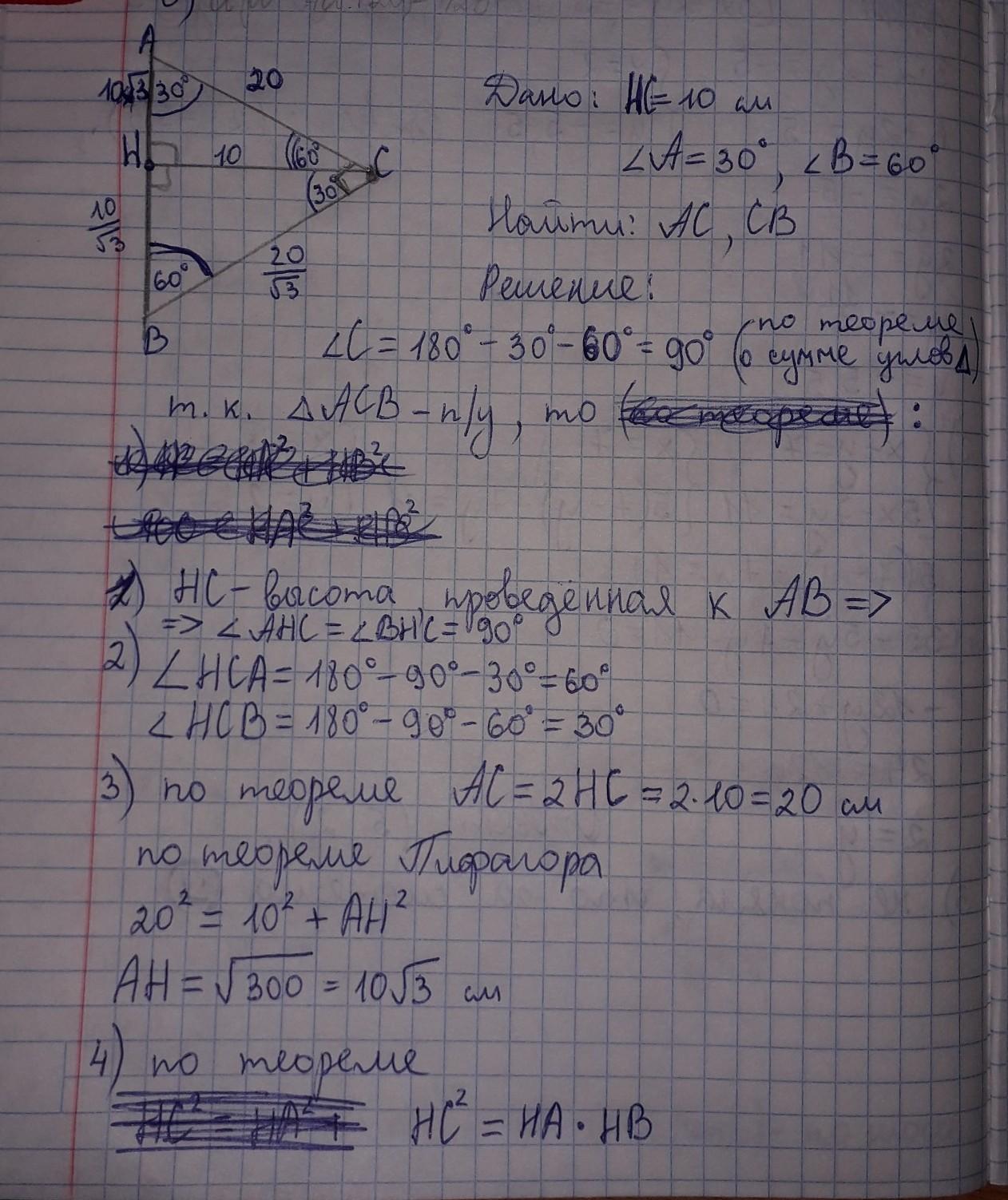 С точки находящейся на расстоянии 10 см от прямой, проведены к ней 2 наклонные которые образуют с прямой углы 30 и 60. Найдите длины наклонных