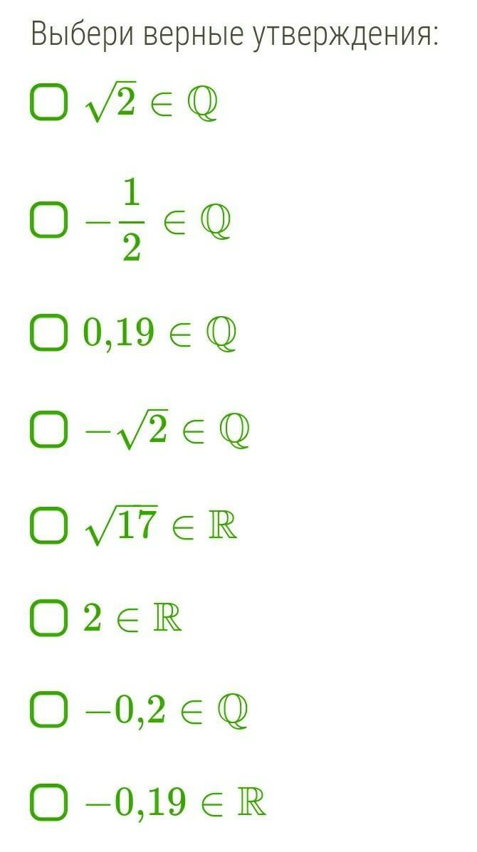 √2∈Q,-√2∈Q, это числа иррациональные, действительные, но не рациональные, т.к. мы их не можем представить в виде дроби, у которой числитель целое, а знаменатель - натуральное число.