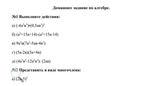 г)(5a-2b)*(3a+4b)=15a²+20ab-6ab-8b²=15a²+14ab-8b²