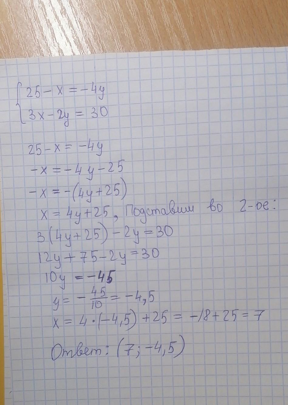 3*(4y+25)-2y=30 раскрываем скобки и переносим y в одну сторону свободные члены в другую