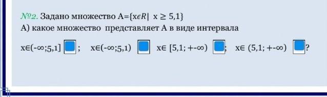 x ≥ 5,1 - справа от числа 5,1 , это интервал от 5,1 включительно до плюс бесконечности, включение в интервал числа 5,1 обозначается квадратной скобкой