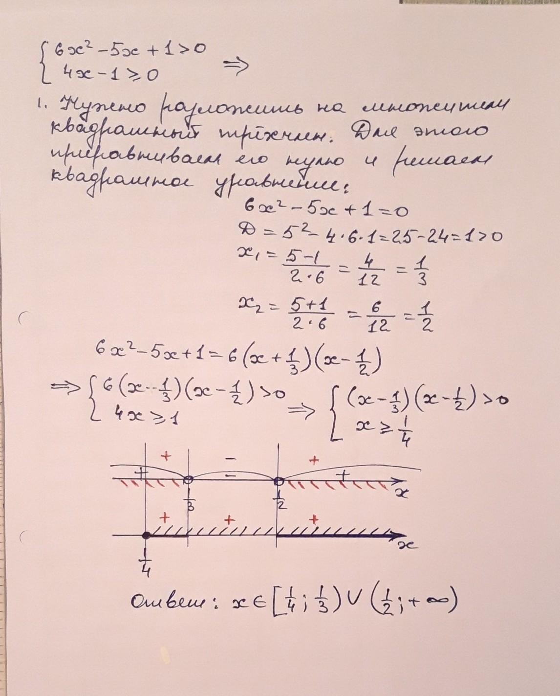 6x²-5х+1=0; х=(5±√(25-24))/12;х=1/3; х=1/2