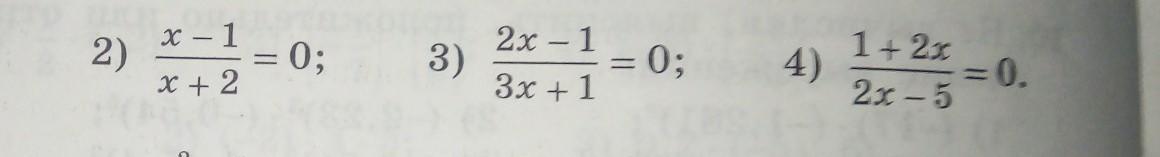 3)\ \ \dfrac{2x-1}{3x+1}=0\ \ \ \Rightarrow \ \ \ \left\{\begin{array}{l}2x-1=0\\3x+1\ne 0\end{array}\right\ \ \left\{\begin{array}{l}x=0,5\\x\ne -\dfrac{1}{3}\end{array}\right\\\\\\Otvet:\ \ x=0,5\ .