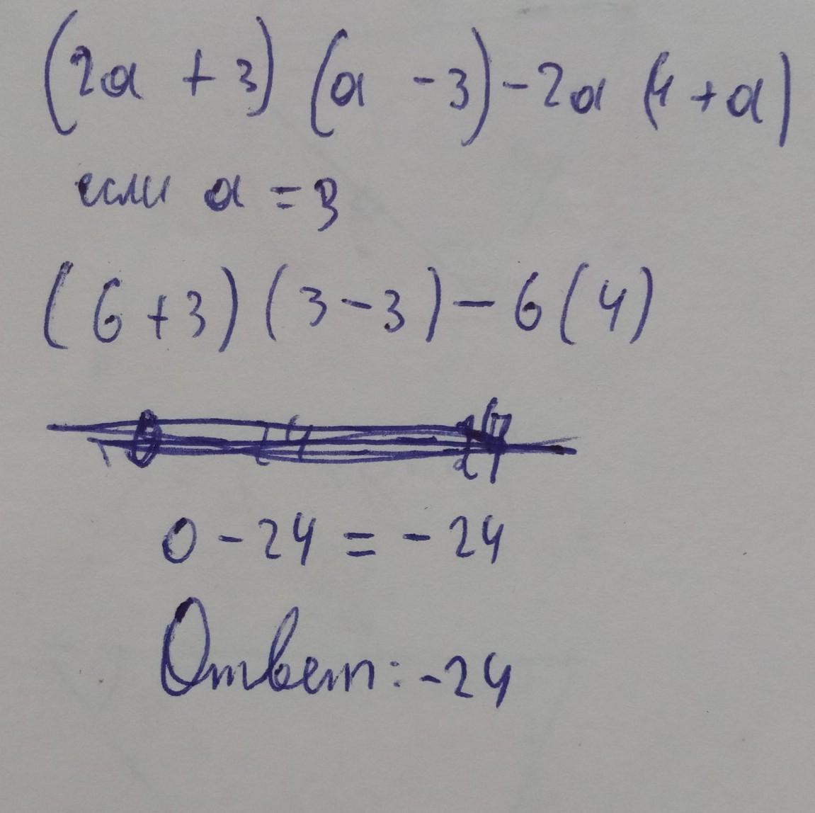 (2a+3)(a-3)-2a(4+a) якщо а=3 то,