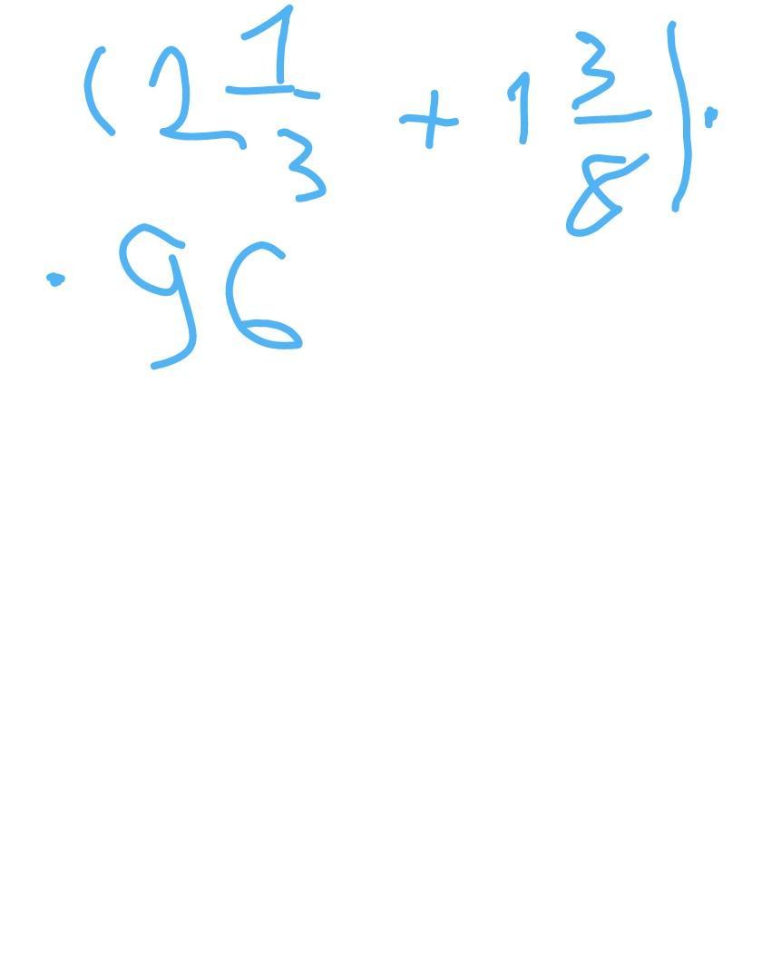 (2 1/3 + 1 3/8)*96=(2 8/24 + 1 9/24)*96=3 27/24 * 96=4 1/8*96 =33/8*96=33/12