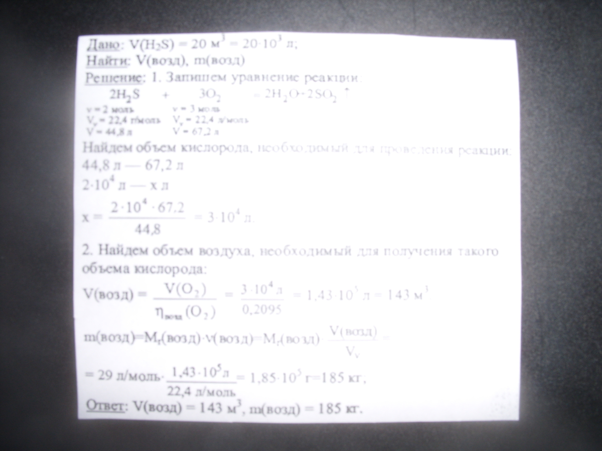 вычислите объем воздуха который потребуется для сжигания 20 м3 сероводорода если при этом образуется вода и оксид серы (IV). Вычислите массу воздуха.
