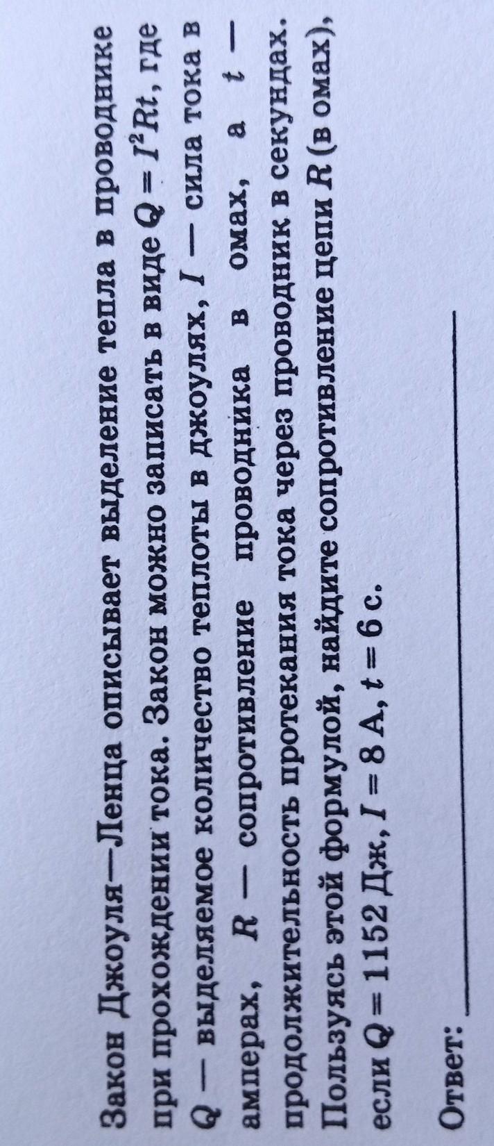R = Q/(I^2*t) = 1152/( 8^2 * 6) = 1152/64*6 = 1152/384 = 3 Ом