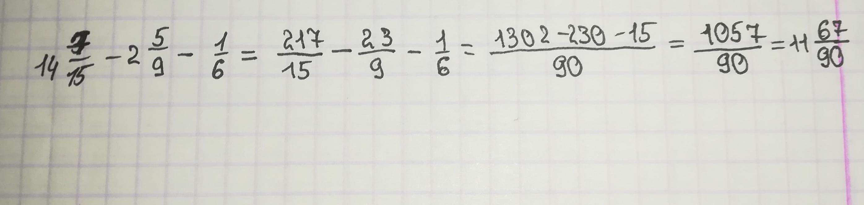 14 целых 7/15 - 2 целых 5/9 - 1/6, Заранее спасибо за ответ.