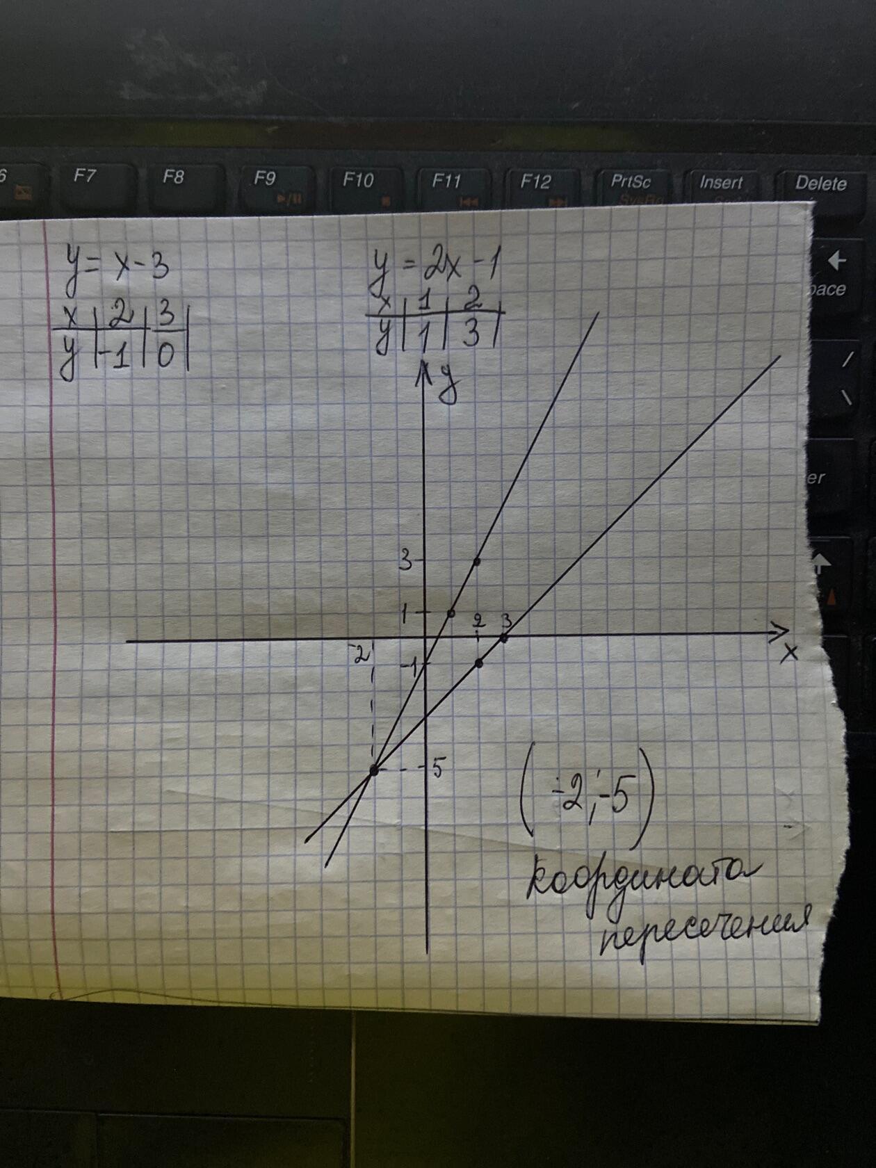 постройте в одной системе координат графики функций и укажите координаты точки их пересечения: у=х-3 и у=2х-1