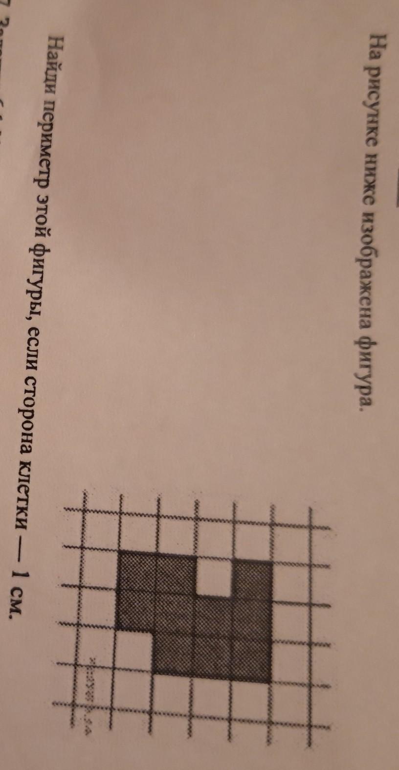 Мы имеем фигуру и нам надо узнать её P, зная что 1 сторона клетки 1 см, значит нам нужно сосчитать стороны клеток, у данной фигуры их 16, получается, P фигуры равен 16 см