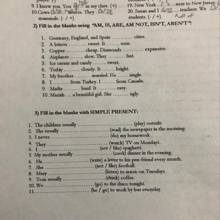 1) aren't 2) isn't, is 3) is, are 4) aren't, are 5) are 6) isn't, is 7) isn't, is 8) am not, am 9) isn't, is 10) isn't, is