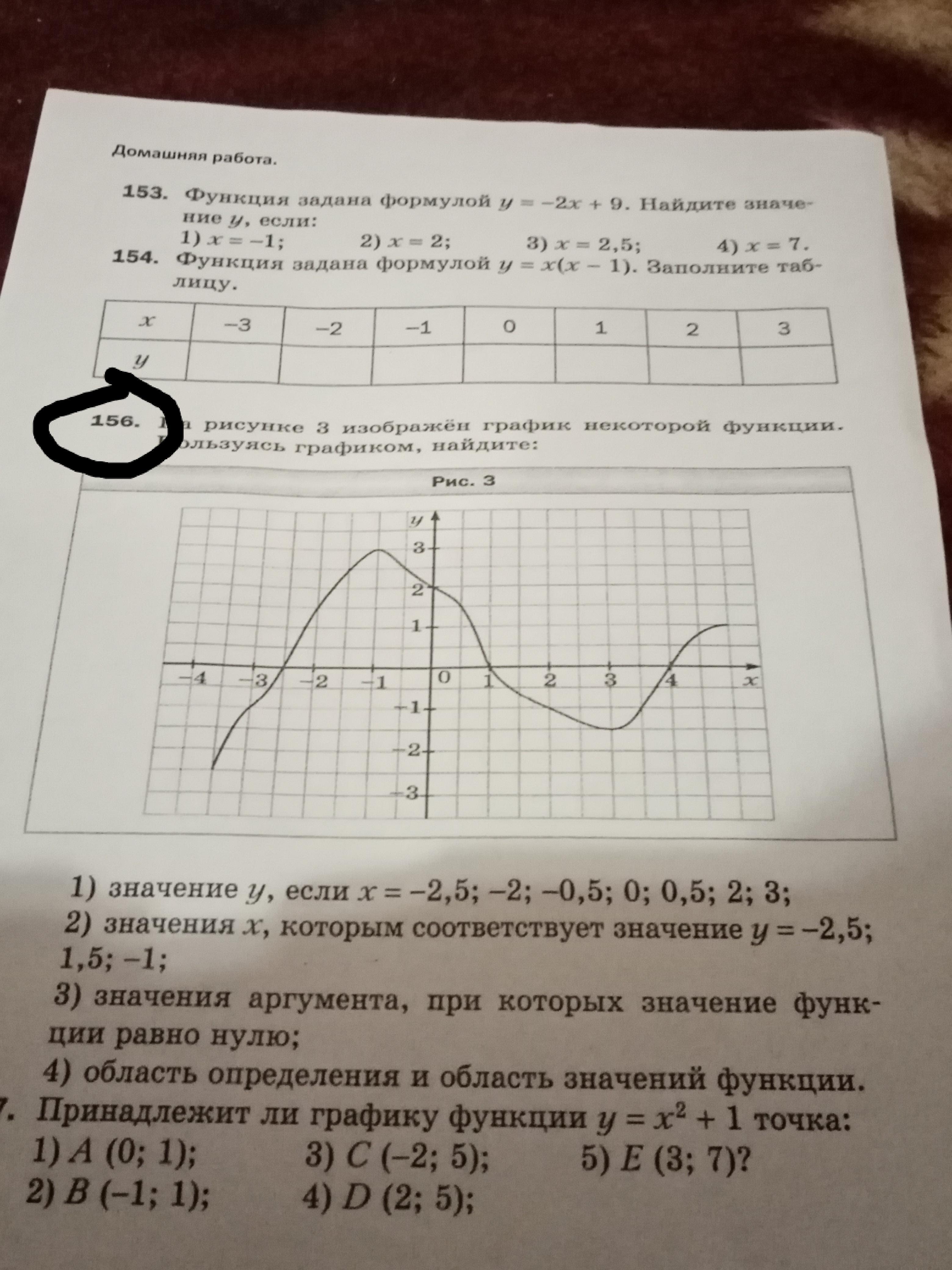 1) 0;1,5;2,5;2;1,5;-1;-1,5 2)-3,5; -2 и 0,5; -3, 2 и 3,5 3) функция равна нулю при x=-2,5;1;4 4) Тут могу ошибаться, так как у функции нет точек ограничения. Если считать её ограниченной слева, то её область определения будет от -3,5 до + бесконечности, а область значения от -2,5 до 3.