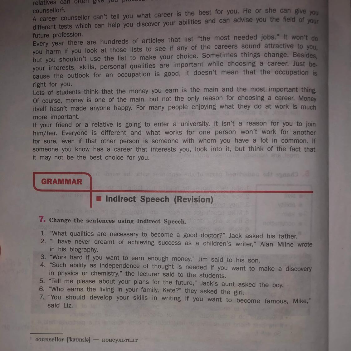 7. Change the sentences using Indirect Speech.