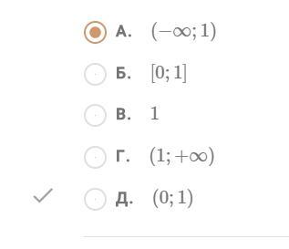 Скажите пожалуйста!!!Почему ответ именно (0;1), а не (1;+бесконечность) или[1;0]?
