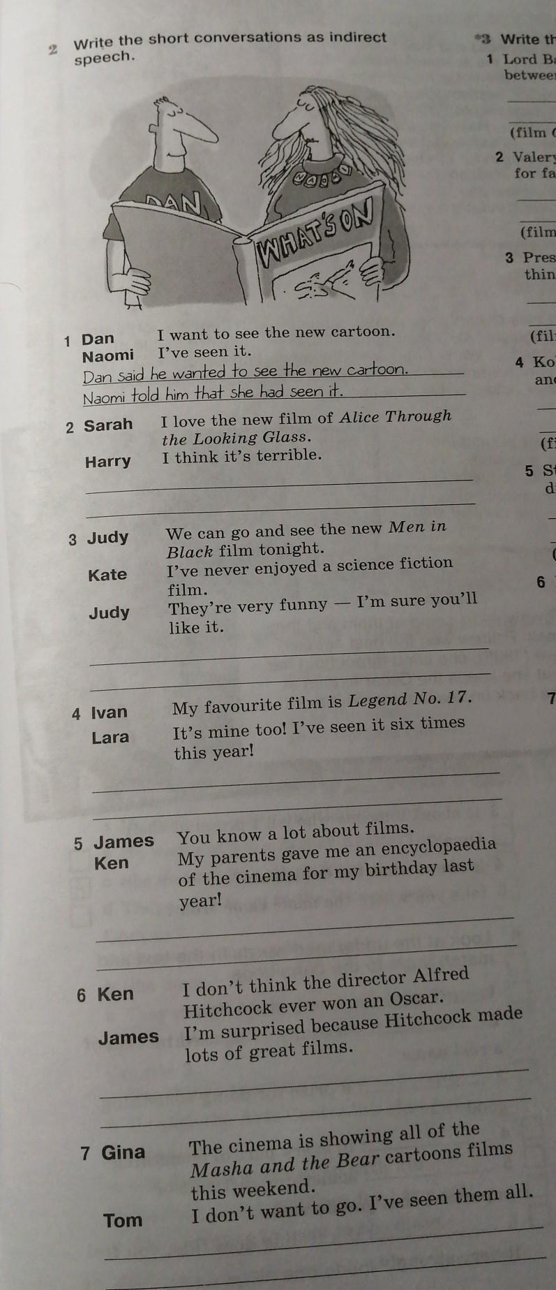 7. Gina said that the cinema was showing all of the "Masha and the Bear" cartoon films this weekend. Tom told her that he didn't want to go becaese he had seen them all.
