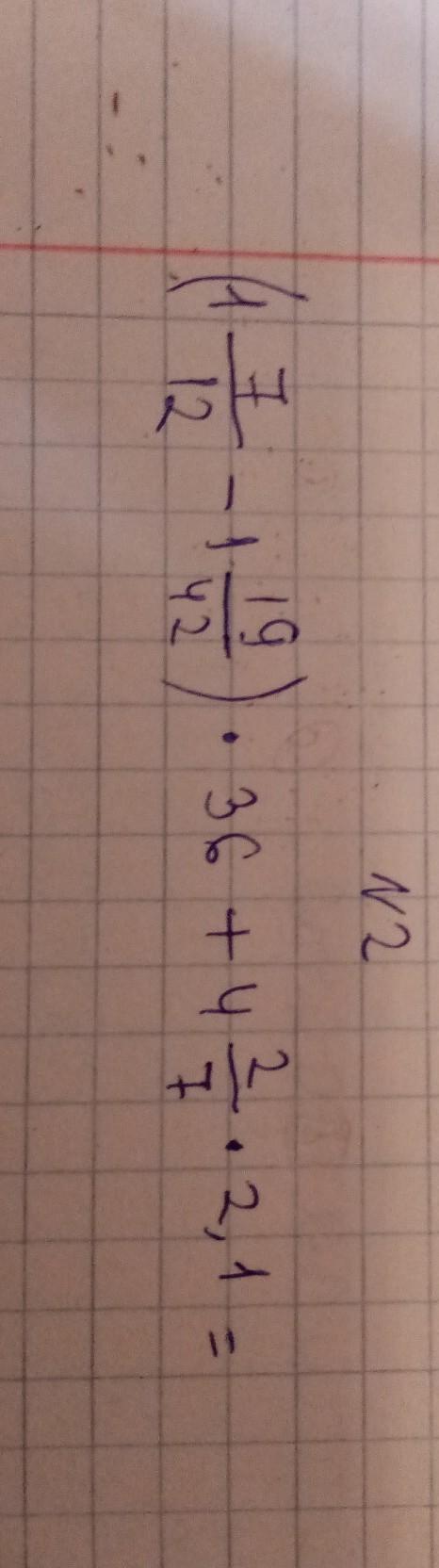 ( 1 7/12 - 1 19/42)* 36 + 4 2/7 * 2,1