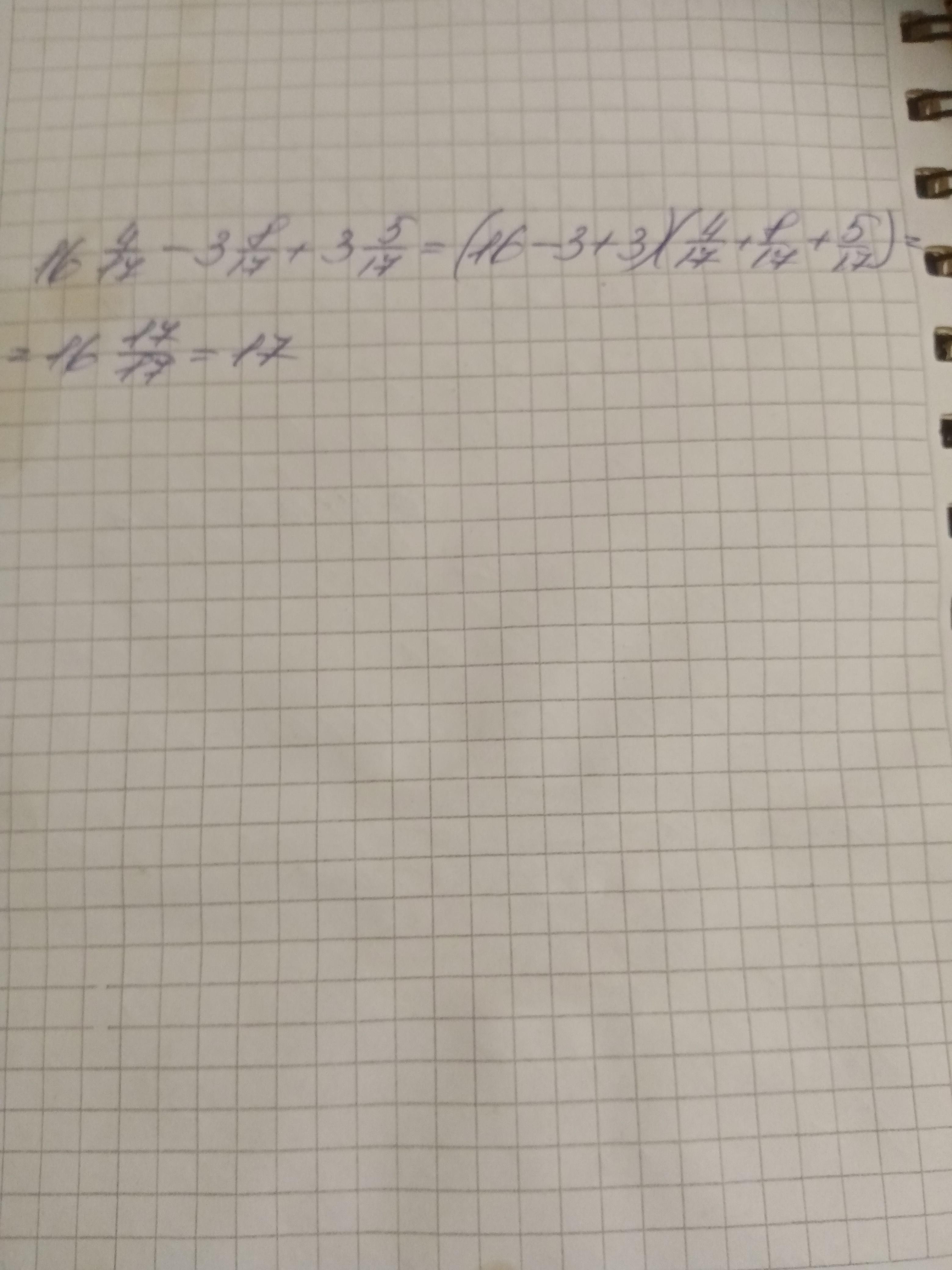 16 4/17- 3 8/17+3 5/17=18 (4-8+5)/17= 18 1/17