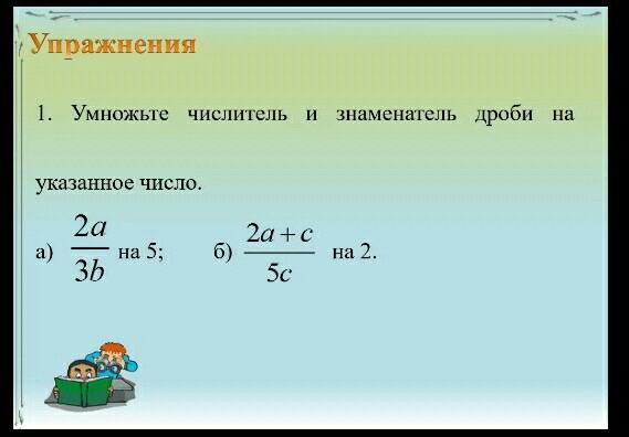 Основное свойство дроби: Если числитель и знаменатель дроби умножить или разделить на одно и тоже число, получим дробь, равную данной.