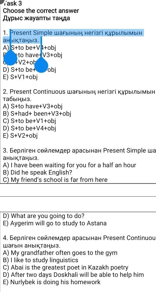 1.e. s v1 obj 2.d. s to be v4 obj. 3. c. 4. e