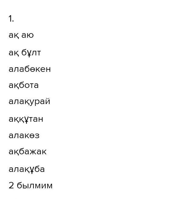 бота, (ала) бұлт, (ала) көз, (ала) қарға, (ала) бажақ.
