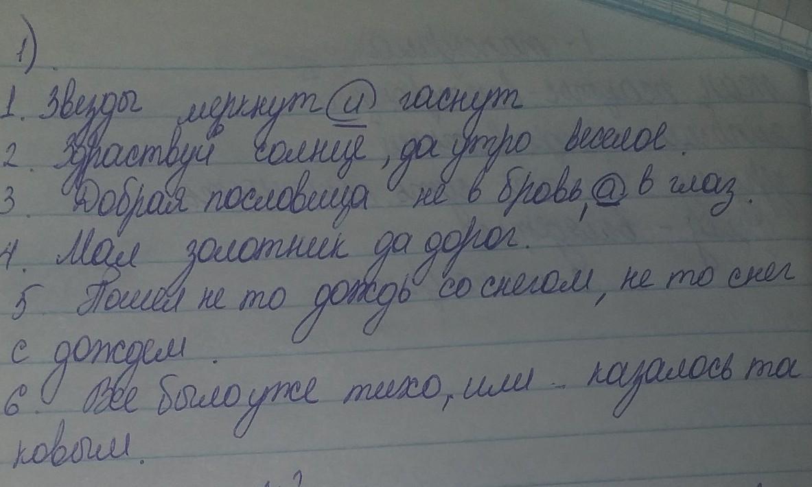 Перепишите предложения, расставьте недостающие знаки препинания, обозначьте союзы и определите их значение. 1. Звезды меркнут и гаснут. 2. Здравствуй, солнце да утро весёлое. 3. Добрая пословица не в бровь а в глаз. 4. Мал золотник да дорог. 5. Пошел не то дождь со снегом не то снег с дождем. 6. Все было уже тихо или казалось таковым.