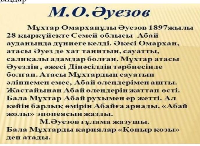 жалқы есімдер; Семей,Абай,Мұхтар Омаров,Дінәсіл.