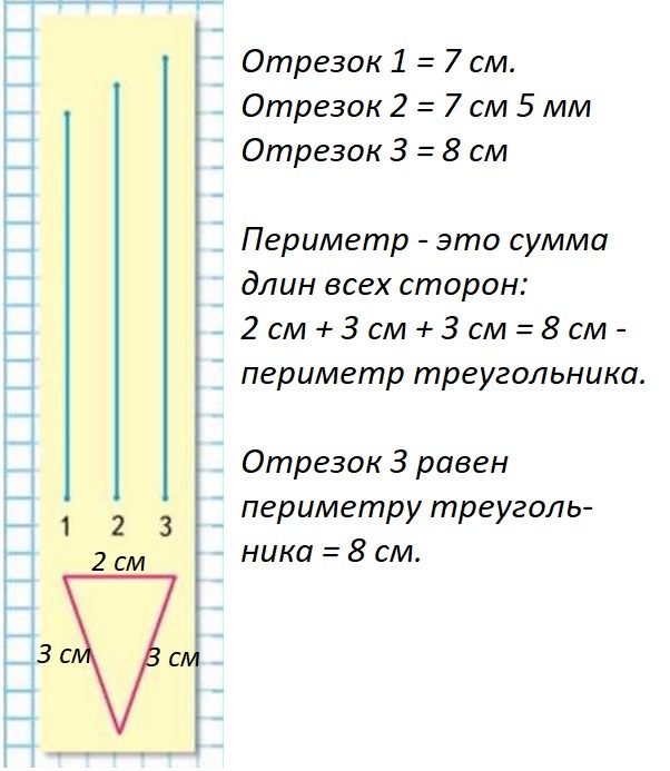 Отрезок №3 = периметру треугольника = 8см.
