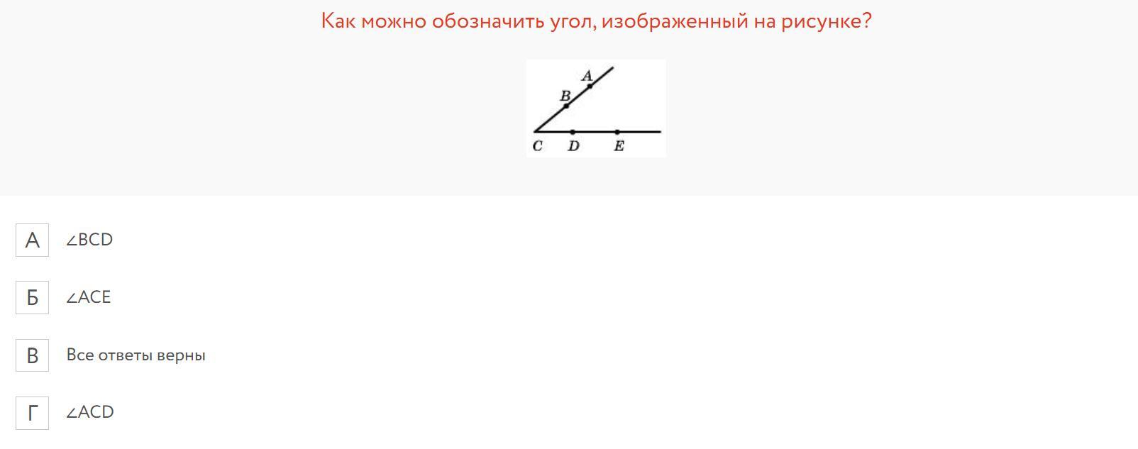 В. Все ответы верны, главное, что вершина С. То есть, в обозначении углов С находится по середине
