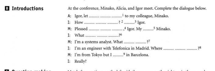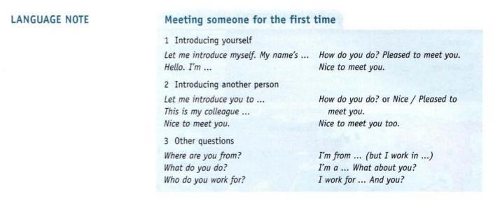 Помогите с английским, плиз срочно!!!! Отдам все баллы Изучите правило на синем фоне Language Note "Meeting someone for the first time" упр. В (Introduction) - дополнить диалог фразами из правила: