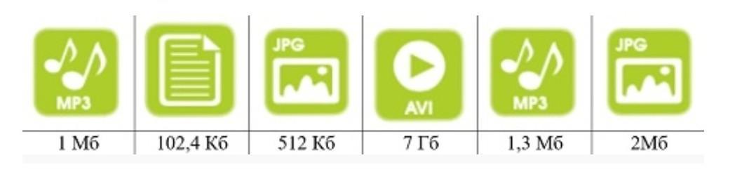 Второкласснику надо скопировать файлы с компьютера и принести их в школу на одном флеш-накопителе. На рисунке изображены размеры файлов, которые надо сохранить.