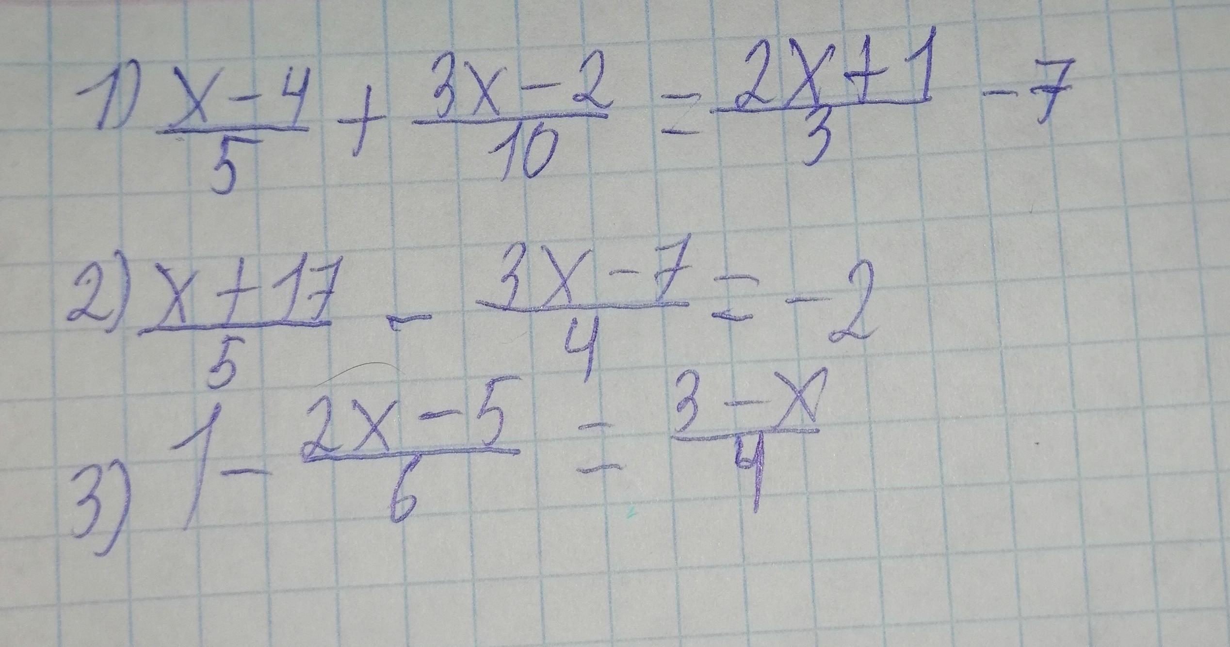1)(х-4)/5 + (3х-2)/10 = (2х+1)/3 -7
