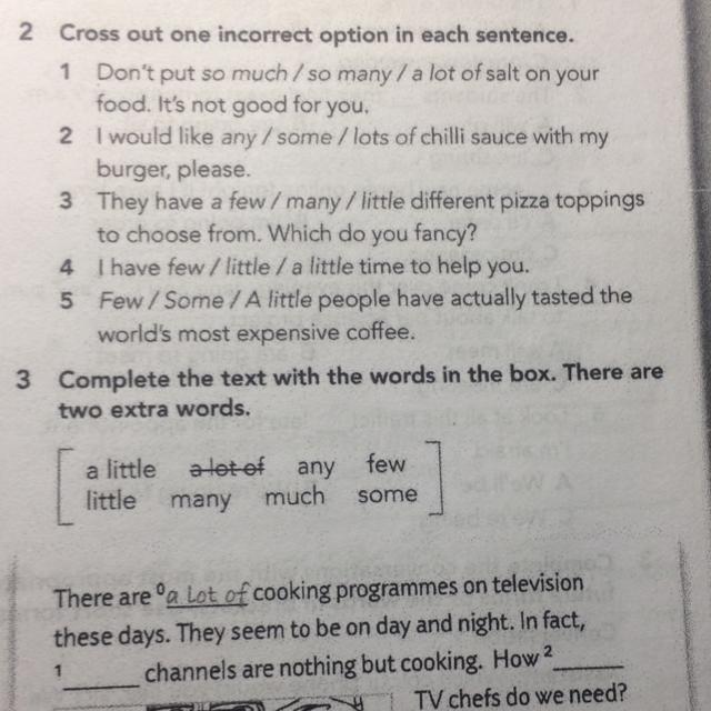 1. a lot of 2. some 3. many 4. a little 5. some. 3 задание не полное.