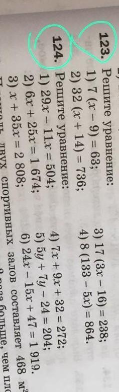 123. 1) х-9=63/7; х=9/9; х=1