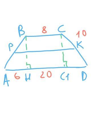 РК=(20+8)÷2=14 см