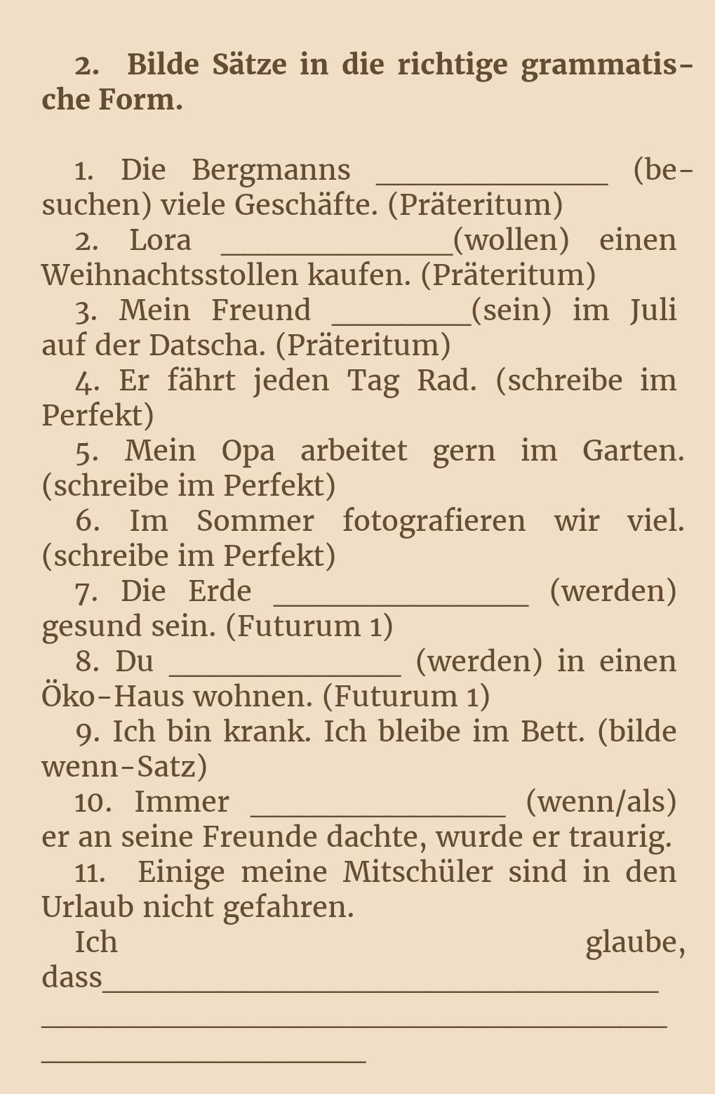 2. Lora __________(wollen) einen Weihnachtsstollen kaufen. (Präteritum)