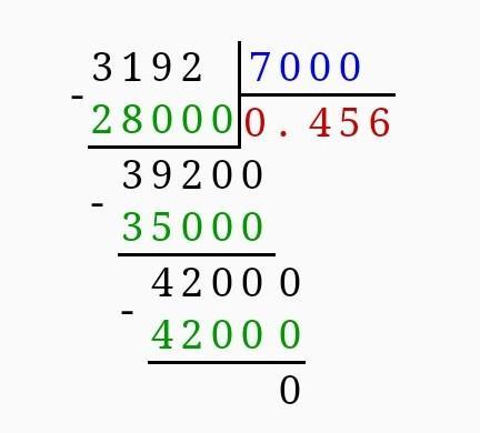 3192 делю на 7000 так как запятую надо передвинуть на 3 так как целое надо делить на целое