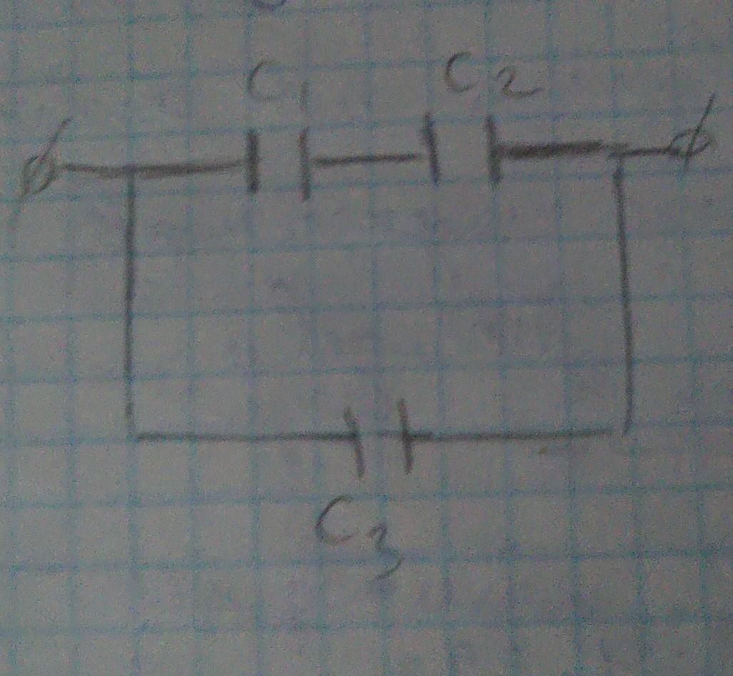 визначити загальну ємність трьох конденсаторів з'єднаних за схемою якщо