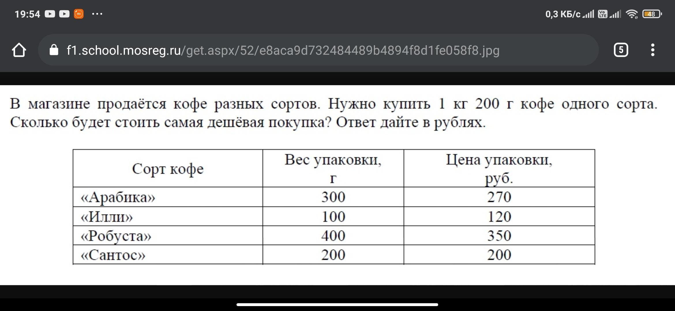 1)вычислить цену 1 кг кофе;