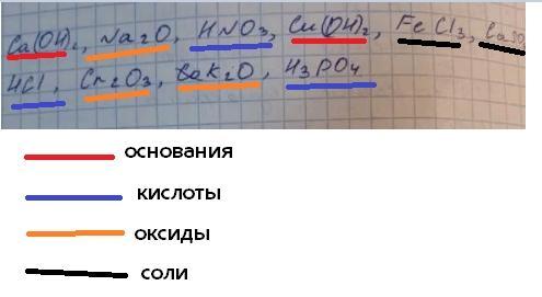 Кислоты: HNO3, HCl, H3PO4.