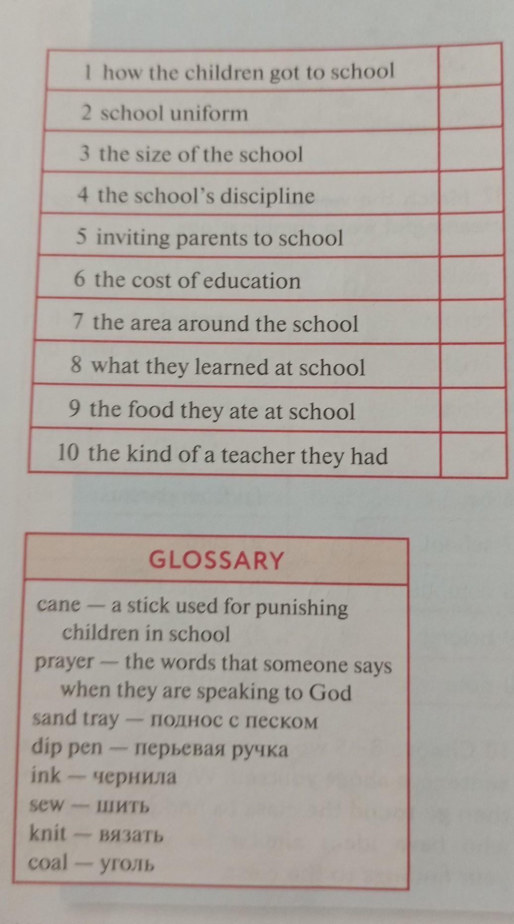 Read the text about school life in Britain in the early 20th century and tick the things described in the text. Find the sentences and phrases to explain your answers.