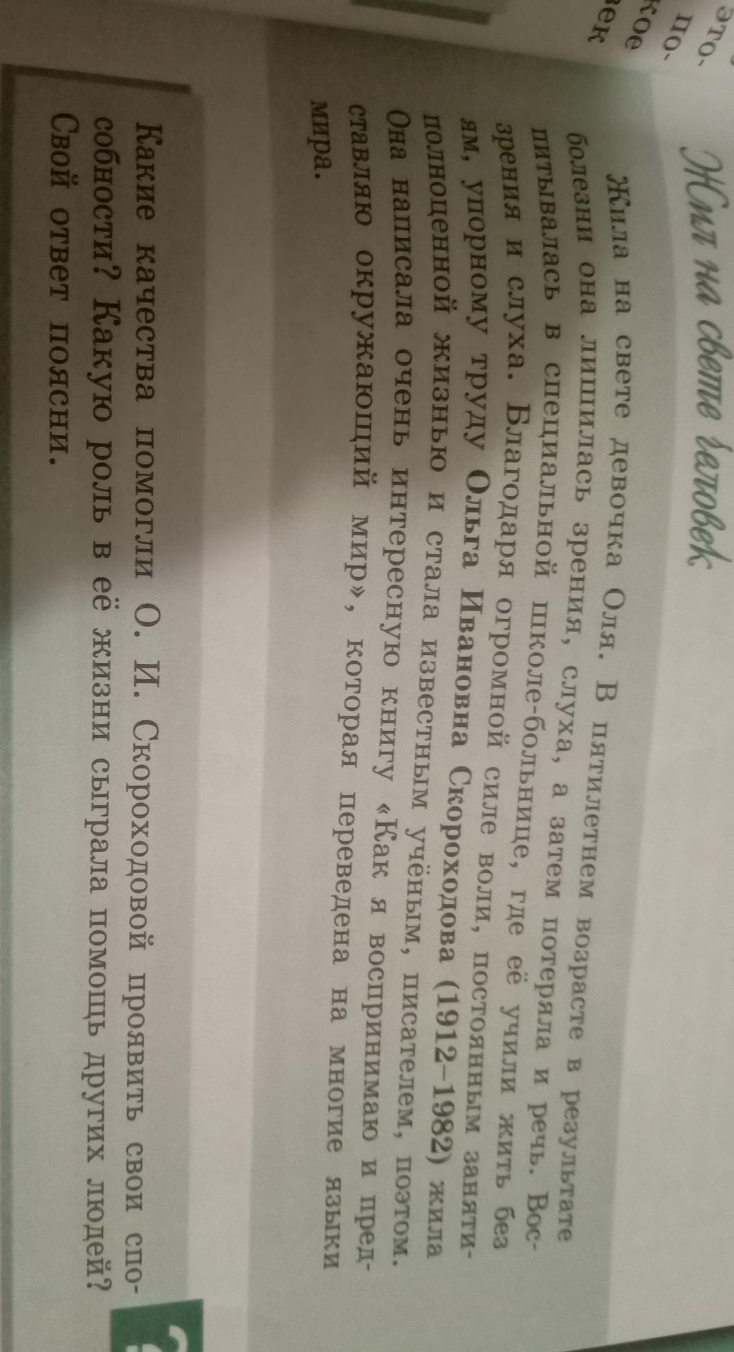 Ольга Ивановна Скороходова с помощью других людей, жила полноценной жизнью, как все люди и даже написала познавательную книгу. Скороходова, не просто человек, а ученый, писатель и поэт. Другие люди помогли ей жить обычной жизнью.