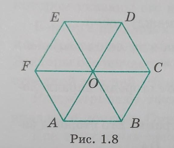 ABCDEF и точки О пересечения его диагоналей (рис. 1.8) запишите векторы с началом и концом в вершинах этого шестиугольника, равные вектору: