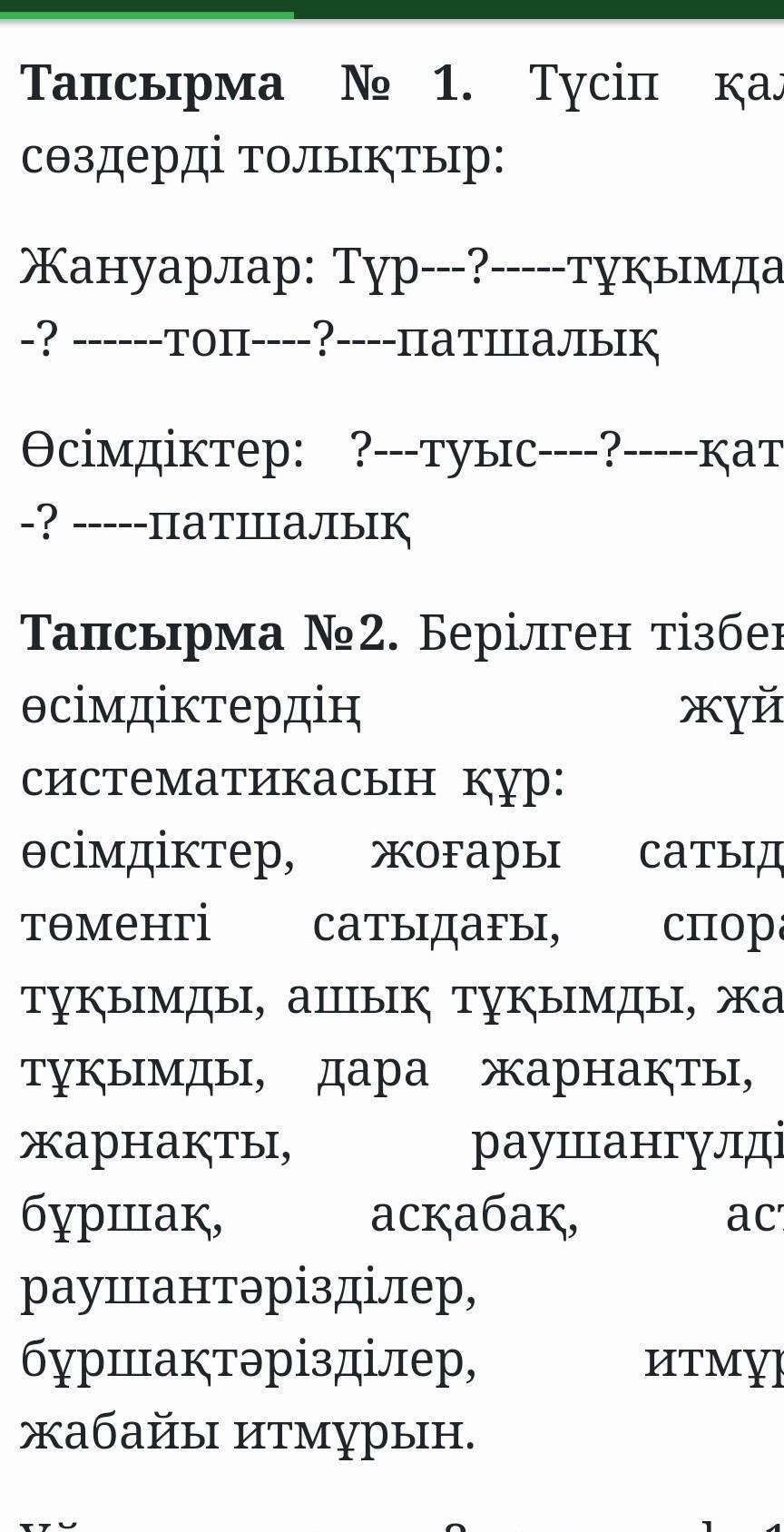 Жануарлар: Түр---?-----тұқымдас------? ------топ----?----патшалық