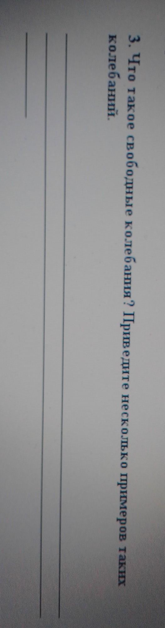 Пример: примером свободных колебаний тела являются колебания груза, подвешенного на пружине. Первоначально выведенный из равновесия внешними силами груз в дальнейшем будет колебаться только за счёт внутренних сил системы «груз-пружина» — силы тяжести и силы упругости