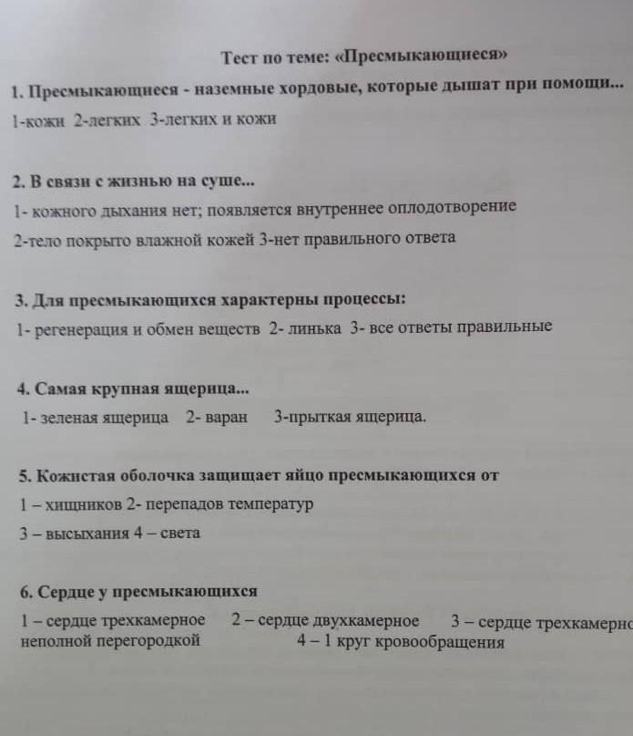 3. Для пресмыкающихся характерны процессы: - 3) Все ответы правильные