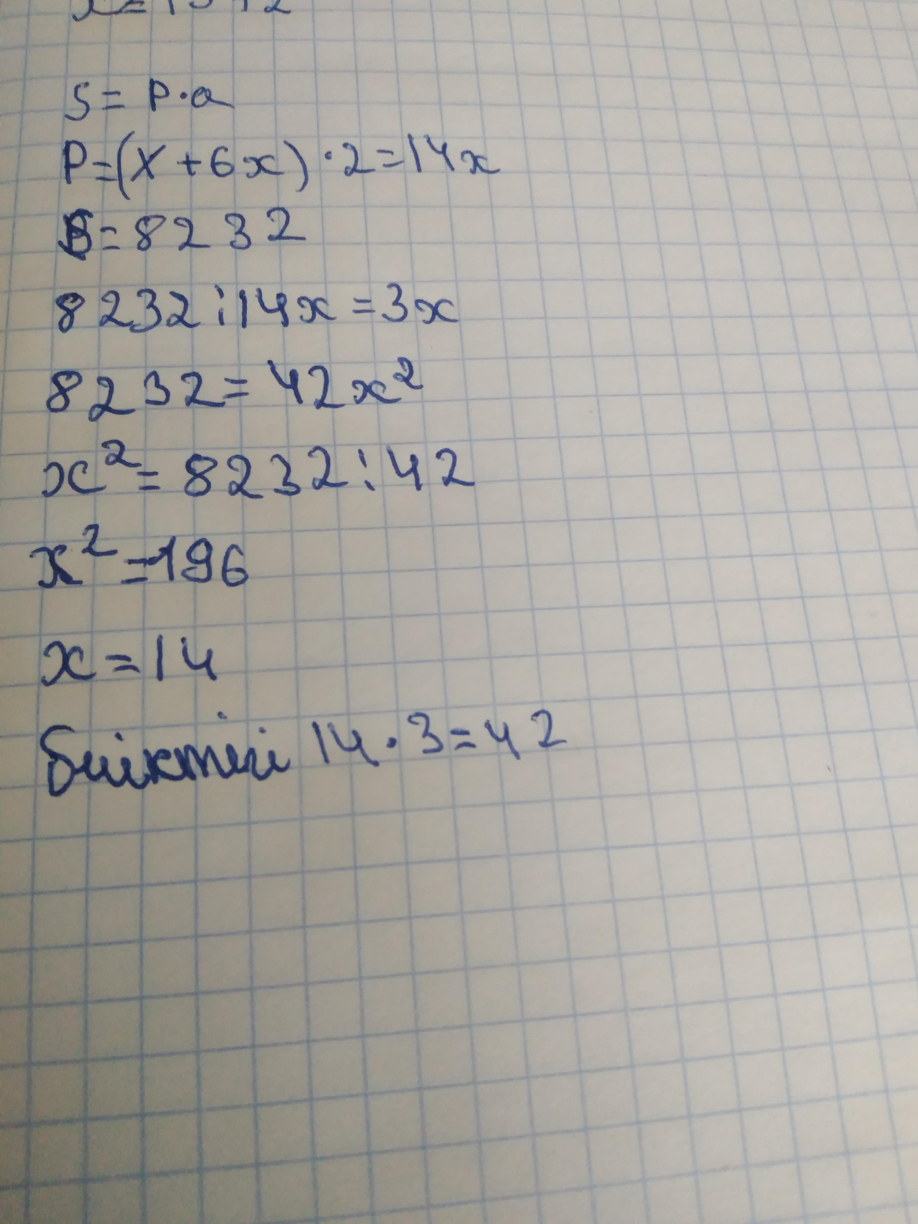 Ғимарат тікбұрышты параллелепипед пішінді болып келген. Оның ені ұзындығынан 6 есе кем және биіктігінен 3 есе кем. Егер ғимараттың бүйір бетінің ауданы 8232 м2 болса, онда оның биіктігін табыңдар.