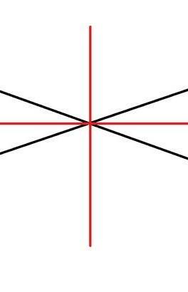 Геометрическое место точек, каждая из которых равноудалены от двух данных пересекающихся прямых представляют собой две прямые - биссектрисы вертикальных углов, образованных двумя данными прямыми. На рисунке данные прямые - чёрные, искомое множество точек - две красные прямые.