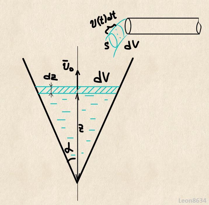 В коническом сосуде уровень воды поднимается с постоянной скоростью v 0. Как зависит от времени скорость поступления воды в сосуд через трубку сечения s? В нулевой момент времени сосуд пуст.