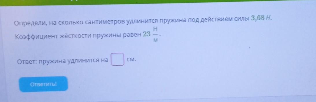 Δx = F / k = 3,68 / 23 = 0,16 м